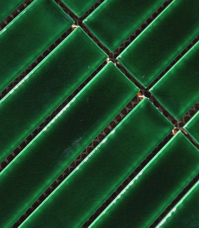 Mozaika Piano Emerald Green to elegancka ceramiczna dekoracja ścienna w wyrafinowanym odcieniu zieleni szmaragdowej z delikatnym półpołyskiem. Małe prostokątne płytki o regularnych krawędziach umożliwiają precyzyjny montaż i zapewniają minimalistyczny wygląd, pełen głębi i świeżości. Doskonała do łazienek, kuchni czy przestrzeni reprezentacyjnych – wnosi styl, soczystą barwę i harmonijną atmosferę w nowoczesnych wnętrzach.